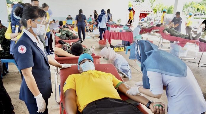 เมื่อวันที่ 25 พ.ค.64 เวลา 09.00 น. กรมทหารราบที่ 152 นำกำลังพลจิตอาสาของหน่วย ร่วมกับ กองอำนวยการรักษาความมั่นคงภายในภาค4ส่วนหน้า จัดกิจกรรมบริจาคโลหิตให้กับเหล่ากาชาดจังหวัดยะลา เพื่อนำไปช่วยเหลือประชาชนในสภาวะที่โลหิตสำรองขาดแคลน และมีผู้บริจาคน้อยลง เนื่องจากสถานการณ์การแพร่ระบาดของเชื้อไวรัสโคโรนา (COVID–19) โดยกิจกรรมครั้งนี้จัดขึ้นบริเวณโรงรถร้อย.บก.ร.152 ค่ายสิรินธร ตำบลเขาตูม อำเภอยะรัง จังหวัดปัตตานี ซึ่งมียอดผู้บริจาค จำนวน 96 นาย ได้เลือดจำนวน 43,200 cc.