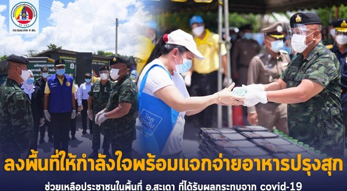 แม่ทัพภาคที่ 4 ลงพื้นที่ให้กำลังใจพร้อมแจกจ่ายอาหารปรุงสุกจากรถครัวสนามช่วยเหลือประชาชนในพื้นที่อำเภอสะเดา ที่ได้รับผลกระทบจากสถานการณ์ COVID -19