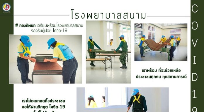 “กองทัพบก เตรียมพร้อมโรงพยาบาลสนาม รองรับผู้ป่วย COVID-19 เราพร้อม.. ที่จะช่วยเหลือประชาชนทุกคน ทุกสถานการณ์.. เราไม่เคยทอดทิ้งประชาชน.. ขอให้ผ่านวิกฤต COVID-19 ครั้งนี้ไปด้วยกัน”