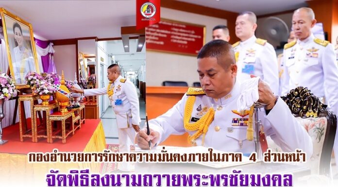 กองอำนวยการรักษาความมั่นคงภายในภาค 4 ส่วนหน้า จัดพิธีลงนามถวายพระพรชัยมงคล เนื่องในโอกาสวันเฉลิมพระชนมพรรษา สมเด็จพระนางเจ้าฯ พระบรมราชินี