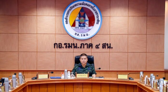 วันที่ 29 พฤษภาคม 2568 เวลา 13.30 น. ที่ห้องประชุม 1 กองอำนวยการรักษาความมั่นคงภายในภาค 4 ส่วนหน้า ค่ายสิรินธร อำเภอยะรัง จังหวัดปัตตานี พลโท ไพศาล หนูสังข์ แม่ทัพภาคที่ 4 / ผู้อำนวยการรักษาความมั่นคงภายในภาค 4 เป็นประธานการประชุมชี้แจงแถลงแผนปฏิบัติการ “รวมพลังจิตอาสา เอาชนะยาเสพติดในพื้นที่ จชต. ครั้งที่ 1/2568 กอ.รมน.ภาค 4 สน.” เพื่อชี้แจงแผนปฏิบัติการฯ ให้หน่วยในโครงสร้างของ กองอำนวยการรักษาความมั่นคงภายในภาค 4 ส่วนหน้า ได้ปฏิบัติงานตามแผนดังกล่าวได้อย่างถูกต้อง และเป็นไปในทิศทางเดียวกัน รวมถึงการขอรับการสนับสนุนจากหน่วยงานภาครัฐที่เกี่ยวข้อง พร้อมติดตามความคืบหน้าการปฏิบัติงานด้านการแก้ไขปัญหายาเสพติดของหน่วยในพื้นที่ เพื่อรองรับและสอดคล้องกับแผนปฏิบัติการ รวมพลังจิตอาสาเอาชนะยาเสพติด ในจังหวัดชายแดนภาคใต้ 2568 ของกระทรวงยุติธรรม โดยมีหน่วยขึ้นตรง กองอำนวยการรักษาความั่นคงภายในภาค 4 ส่วนหน้า, ศูนย์ป้องกันและแก้ไขปัญหายาเสพติด กอ.รมน.ภาค 4 สน., สำนักงานป้องกันและปราบปรามยาเสพติด ภาค 9, ตำรวจภูธรภาค...