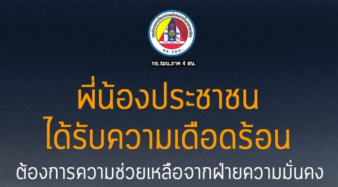 พี่น้องประชาชน ได้รับความเดือดร้อน ต้องการความช่วยเหลือจากฝ่ายความมั่นคง โปรดแจ้งสายตรงแม่ทัพภาคที่ 4