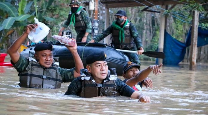 แม่ทัพภาคที่ 4 ลงพื้นที่ช่วยเหลือผู้ประสบอุทกภัยในพื้นที่ยะลา มอบถุงยังชีพ ข้าวกล่อง พร้อมหมอสนาม ช่วยเหลือบรรเทาทุกข์เบื้องต้น