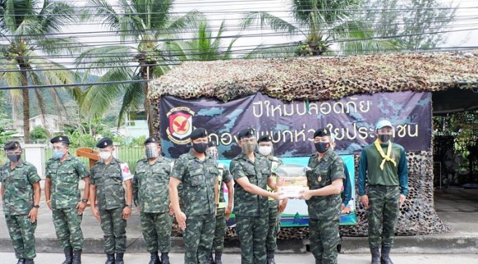 เมื่อวันที่ 3 มกราคม 2564 เวลา 14.00 น. ณ บริเวณหน้าค่ายเสนาณรงค์ อำเภอหาดใหญ่ จังหวัดสงขลา พลตรี ศานติ ศกุนตนาค ผู้บัญชาการกองพลทหารราบที่ 5 ลงพื้นที่ตรวจเยี่ยมจุดบริการประชาชน ร.5 พัน.1 เนื่องในห้วงวันหยุดเทศกาลปีใหม่ 2564 พร้อมกับพบปะเจ้าหน้าที่ และมอบนโยบาย/ข้อห่วงใยในการปฏิบัติตนในห้วงสถานการณ์ COVID-19 อีกทั้งยังได้มอบสิ่งของอุปโภค เพื่อสร้างขวัญกำลังใจให้กับเจ้าหน้าที่ที่ปฏิบัติงาน