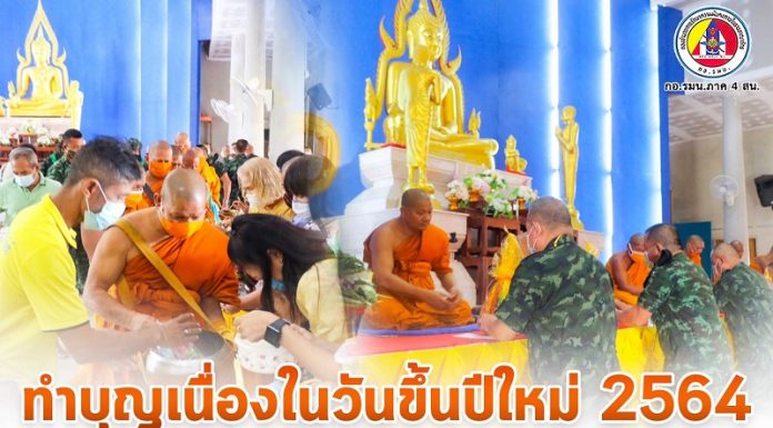 เมื่อวันที่ 1 มกราคม 2564 เวลา 07.00 น. พลโท สิทธิพร มุสิกะสิน รองผู้อำนวยการรักษาความมั่นคงภายในภาค 4 ส่วนหน้า นำพุทธศาสนิกชนร่วมพิธีทำบุญตักบาตรเนื่องในวันขึ้นปีใหม่ พ.ศ. 2564 ณ วัดชลธาราสิงเห พระอารามหลวง ตำบลเจ๊ะเห อำเภอตากใบ จังหวัดนราธิวาส โดยมี คณะผู้บังคับบัญชา, หน่วยงานในพื้นที่ และพุทธศาสนิกชนในพื้นที่ เข้าร่วมพิธีเป็นจำนวนมาก