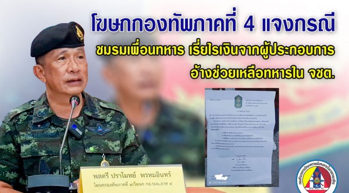 โฆษกกองทัพภาคที่ 4 แจงกรณี ทหารนอกราชการชมรมเพื่อนทหาร เรี่ยไรเงินจากผู้ประกอบการ อ้างช่วยเหลือทหารในจังหวัดชายแดนภาคใต้
