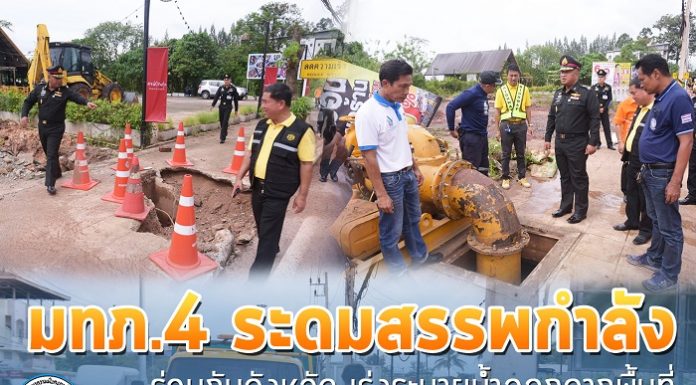 แม่ทัพภาคที่ 4 ระดมสรรพกำลัง บูรณาการร่วมกับจังหวัด เร่งระบายน้ำออกจากพื้นที่ เมืองสุราษฎร์ธานี เพื่อไม่ให้กระทบต่อภารกิจการ รับ – ส่งเสด็จ และช่วยเหลือพี่น้องประชาชน