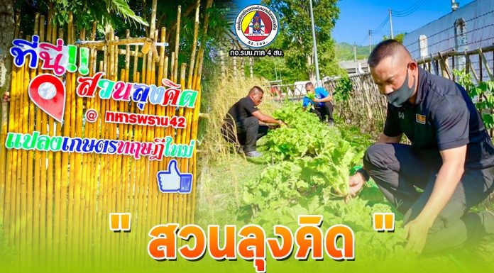 ที่ แปลงเกษตรทฤษฎีใหม่ กรมทหารพรานที่ 42 ค่ายมหาจักรีสิรินธร ตำบลท่าประดู่ อำเภอนาทวี จังหวัดสงขลา พันเอก สมคิด คงแข็ง ผู้บังคับหน่วยเฉพาะกิจกรมทหารพรานที่ 42 ลงพื้นที่ตรวจเยี่ยม "สวนลุงคิด" แปลงเกษตรทฤษฎีใหม่ ตามหลักปรัชญาเศรษฐกิจพอเพียง ที่มีดำริให้จัดสร้างขึ้น เพื่อเป็นแหล่งเรียนรู้ และแปลงผักสวนครัวปลอดสารพิษ ให้กำลังพลและครอบครัวได้ไว้บริโภค พร้อมทั้งให้คำแนะนำและร่วมเก็บเกี่ยวผลผลิตที่ได้เตรียมไปมอบให้กำลังพล เพื่อนำไปประกอบอาหารต่อไป