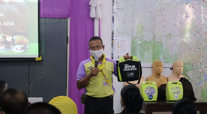สำหรับการอบรมในครั้งนี้ ผู้เข้ารับการอบรมจะได้รับความรู้วิธีการช่วยชีวิตขั้นพื้นฐาน (Cardiopulmonary Resuscitation, CPR) การปฐมพยาบาลเพื่อช่วยเหลือผู้ประสบเหตุที่หยุดหายใจหรือหัวใจหยุดเต้นให้กลับมาหายใจ และมีการไหลเวียนออกซิเจนรวมทั้งเลือดกลับคืนสู่สภาพเดิม พร้อมทั้งป้องกันเนื้อเยื่อไม่ให้ได้รับอันตรายจากการขาดออกซิเจนอย่างถาวร โดยการกดหน้าอกและช่วยหายใจ รวมถึงการใช้เครื่องกระตุกหัวใจไฟฟ้าอัตโนมัติ (Automated External Defibrillator, AED) ซึ่งเป็นอุปกรณ์อิเล็กทรอนิกส์แบบพกพาชนิดหนึ่ง ที่สามารถวินิจฉัยภาวะหัวใจเต้นผิดจังหวะที่เป็นอันตรายถึงชีวิตได้โดยอัตโนมัติ และสามารถให้การรักษาด้วยการช็อกไฟฟ้ากระตุกหัวใจ โดยใช้กระแสไฟฟ้าหยุดรูปแบบการเต้นของหัวใจที่ผิดจังหวะ...