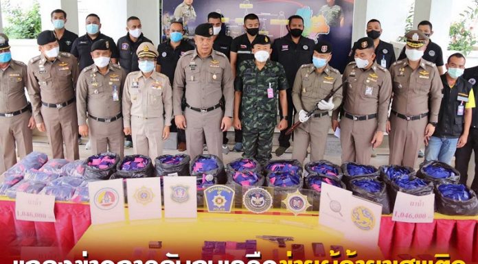 รองผู้อำนวยการรักษาความมั่งคงภายในภาค 4 ส่วนหน้า ร่วมแถลงข่าวการจับกุมเครือข่ายผู้ค้ายาเสพติดรายใหญ่พื้นที่จังหวัดพัทลุง