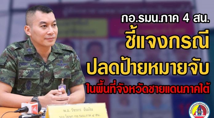 วันนี้ ( 3 พ.ย. 63 ) พันเอก วัชรกร อ้นเงิน รองโฆษก กองอำนวยการรักษาความมั่นคงภายในภาค 4 ส่วนหน้า เปิดเผยถึงกรณีดังกล่าวว่า การปลดป้ายบุคคลตามหมายจับเป็นไปตามนโยบายสั่งการของ พลโท เกรียงไกร ศรีรักษ์ แม่ทัพภาคที่ 4/ ผู้อำนวยการรักษาความมั่นคงภายในภาค 4 จริง โดยได้สั่งการในโอกาสประชุมประจำสัปดาห์ของกองอำนวยการรักษาความมั่นคงภายในภาค 4 ส่วนหน้า เมื่อวันที่ 26 ตุลาคม 63 ที่ผ่านมา และได้ประสานไปยังกองกำลังตำรวจจังหวัดชายแดนภาคใต้ ซึ่งเป็นหน่วยรับผิดชอบหลักในการดำเนินการจัดทำป้ายประกาศดังกล่าว และหน่วยเฉพาะกิจในพื้นที่ ให้มีการปลดป้ายบุคคลตามหมายจับคดีความมั่นคงในพื้นที่ลง หรือนำออก โดยให้มีการตรวจสอบและพิจารณา ปรับปรุง หรือ อัพเดท...