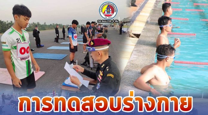 พันเอก เกียรติศักดิ์ ณีวงษ์ หัวหน้ากองกำลังพล มณฑลทหารบกที่ 41 /โฆษกกองอำนวยการรักษาความมั่นคงภายในภาค 4 ส่วนหน้า ชี้แจงขั้นตอนการปฏิบัติตนในการทดสอบร่างกายในแต่ละสถานีแก่เจ้าหน้าที่ และผู้เข้ารับการทดสอบ ทั้งนี้เพื่อให้เป็นไปในแบบแผนและการปฏิบัติเป็นไปในทิศทางเดียวกัน โปร่งใส บริสุทธิ์ ยุติธรรม ซึ่งกองทัพบกจะได้กำลังพลที่มีประสิทธิภาพมีความพร้อมทั้งทางด้านร่างกายและจิตใจ รับใช้ ชาติ ศาสน์ กษัตริย์ และพี่น้องประชาชนใด้อย่างเต็มความสามารถ ทุกสถานการณ์ ดังคำขวัญของกำลังพลกองทัพบกที่ว่า" พิทักษ์ราชัน ปกป้องประชา รักษาแผ่นดิน ณ สนามสอบ มณฑลทหารบกที่ 41 (หน้ากองบังคับการกองพันทหารราบที่ 2 กรมทหารราบที่ 15 และสระว่ายน้ำสนามกีฬากลาง) ค่ายวชิราวุธ อำเภอเมือง จังหวัดนครศรีธรรมราช