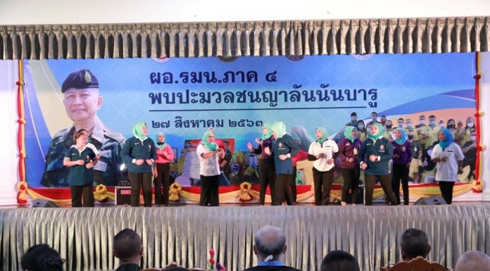 วันนี้ ( 27 ส.ค.63,1130 ) พลโท พรศักดิ์ พูลสวัสดิ์ แม่ทัพภาคที่ 4/ผู้อำนวยการรักษาความมั่นคงภายในภาค 4 เดินทางเป็นประธานกิจกรรมพบปะมวลชนญาลันนันบารู พื้นที่ 3 จังหวัดชายแดนภาคใต้ และ 4 อำเภอของจังหวัดสงขลา เพื่อพูดคุยหารือและติดตามความก้าวหน้าการแก้ไขปัญหายาเสพติดในห้วงที่ผ่านมา พร้อมมอบนโยบายการขับเคลื่อนกิจกรรมด้านยาเสพติดผ่านสภาสันติสุขตำบล ในการจะเข้าไปประสานการดำเนินงานสอดรับแผนงาน ตำบลมั่นคง มั่งคั่ง ยั่งยืน ณ สโมสรนายทหารสัญญาบัตร กองพลทหารราบที่ 15 ค่ายสมเด็จพระสุริโยทัย อ.หนองจิก จ.ปัตตานี โดยมี มวลชนญาลันนันบารูในพื้นที่เข้าร่วมกิจกรรมพบปะกว่า 600 คน