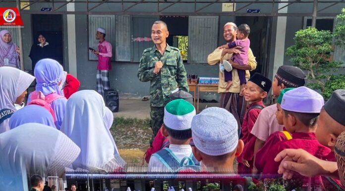 วันที่ 11 พฤษภาคม 2568 หน่วยเฉพาะกิจ กองพันทหารราบที่ 1 (ฉก.พัน.ร.ที่ 1) จัดกำลังพลชุดปฏิบัติการเสริมสร้างความเข้าใจ ลงพื้นที่โรงเรียนสอนศาสนา (ตาดีกา) ประจำมัสยิดตาดีกาดาลัมกราวะ บ้านโคกหญ้าคา หมู่ที่ 6 ตำบลคลองใหม่ อำเภอยะรัง จังหวัดปัตตานี เพื่อพบปะพูดคุยกับบุคลากรทางการศึกษาและเยาวชนในโรงเรียน ตลอดจนมีเป้าหมายเพื่อเสริมสร้างความเข้าใจ ลดความหวาดระแวง พร้อมทั้งชี้แจงมาตรการต่าง ๆ ด้านความปลอดภัยในพื้นที่รับผิดชอบของหน่วย เพื่อให้บุคลากรทางการศึกษาและประชาชนในพื้นที่รู้สึกอุ่นใจ และมีความมั่นใจในการดูแลความปลอดภัยให้กับประชาชน และได้รับข้อมูลข่าวสารที่ถูกต้อง ทันสถานการณ์