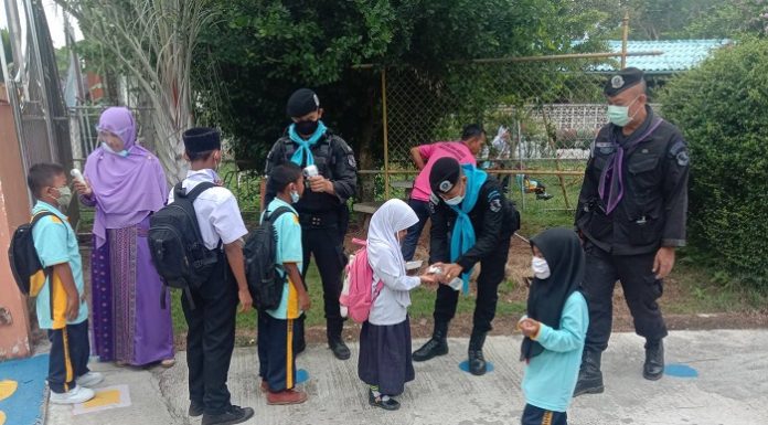 ชุดปฏิบัติการกิจการพลเรือน หน่วยเฉพาะกิจกรมทหารพรานที่ 44 โดยกองร้อยทหารพรานที่ 4402 เข้าพบปะพัฒนาสัมพันธ์บุคลากรทางการศึกษา และนักเรียน เพื่อพูดคุยแลกเปลี่ยนข่าวสารในพื้นที่และตรวจความเรียบร้อย เพื่อทำให้พื้นที่สถานศึกษามีความปลอดภัย ณ โรงเรียนบ้านน้ำดำ หมู่ที่ 1 บ้านบาลบูกาลูวะ ตำบลน้ำดำ อำเภอทุ่งยางแดง จังหวัดปัตตานี รวมถึงตรวจคัดกรองและตรวจวัดอุณหภูมินักเรียน และผู้ปกครอง ก่อนเข้าห้องเรียน พร้อมกับประชาสัมพันธ์ให้ความรู้เรื่องการแพร่ระบาดของโรคติดเชื้อไวรัสโคโรน่า (COVID-19) เพื่อให้ได้รู้ถึงแนวทางการปฏิบัติตนในสถานการณ์ ได้รับรู้ข้อมูลข่าวสารตระหนักถึงภัยร้ายแรง และปฏิบัติตามคำแนะนำการป้องกันควบคุมโรคฯ สามารถระวังป้องกันเชื้อไวรัส โคโรน่า (COVID-19) ได้อย่างถูกต้อง