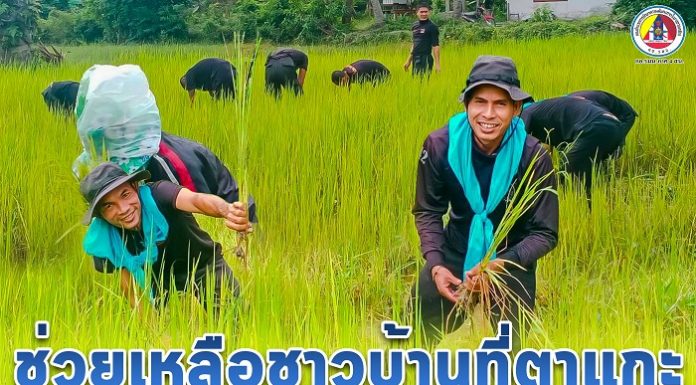 ทหารพรานวางปืน จับมัดกล้า ช่วยเหลือชาวบ้านที่ตาแกะ ในการเพาะปลูกข้าวที่ นาข้าวในพื้นที่ ตำบลตาแกะ อำเภอยะหริ่ง จังหวัดปัตตานี