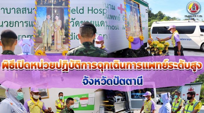 วันนี้ (27 กรกฎาคม 2563) เวลา 09.09 น. ที่ ลานจอดรถพระราชทาน ศูนย์อำนวยการแพทย์จังหวัดชายแดนภาคใต้ ค่ายสิรินธร ตำบลเขาตูม อำเภอยะรัง จังหวัดปัตตานี พันเอก นายแพทย์ โชคชัย ขวัญพิชิต รองผู้อำนวยการศูนย์อำนวยการแพทย์จังหวัดชายแดนภาคใต้ เป็นประธานในพิธีเปิดหน่วยปฏิบัติการฉุกเฉินการแพทย์ระดับสูง จังหวัดปัตตานี โดยมีเจ้าหน้าที่ศูนย์อำนวยการแพทย์จังหวัดชายแดนภาคใต้, ผู้แทนจากวิทยาลัยการสาธารณสุขสิรินธร จังหวัดยะลา, โรงพยาบาลยะรัง และภาคส่วนที่เกี่ยวข้องร่วมพิธี