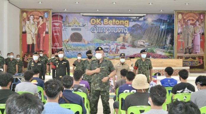 วันที่ 25 ก.ค.63,เวลา 13.00 น. ที่ ศาลาอเนกประสงค์ ที่ว่าการอำเภอ อ.เบตง จ.ยะลา พลตรี เกรียงไกร ศรีรักษ์ รองผู้อำนวยการรักษาความมั่นคงภายในภาค 4 ส่วนหน้า/คณะสังเกตการณ์การตรวจเลือกทหารกองประจำการ ออกตรวจเยี่ยมการตรวจเลือกทหารกองเกินเข้ารับราชการทหารกองประจำการประจำปี 2563 ในพื้นที่ความรับผิดชอบ ของกองพันทหารราบที่ 3 กรมทหารราบที่ 152 อ.เบตง จ.ยะลา ซึ่งมีชายไทยผู้ที่ถึงเกณฑ์คัดเลือกที่มีภูมิลำเนาอยู่ในเขตพื้นที่อำเภอเบตง เดินทางมารายงานตัวตามหมายเรียก เพื่อคัดเลือกทหารกองประจำการเป็นจำนวนมาก