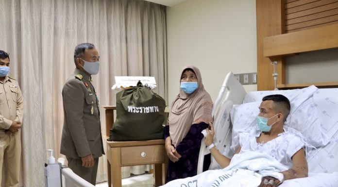 ทั้งนี้ พลเอก ไพบูลย์ คุ้มฉายา องคมนตรี ได้เดินทางเข้ามอบสิ่งของพระราชทานแก่เจ้าหน้าที่ ที่ได้รับผลกระทบจากสถานการณ์ความไม่สงบในพื้นที่จังหวัดชายแดนภาคใต้ จำนวน 4 นาย ประกอบด้วย พันตรี ประเทือง พุศลพงษ์ และ อาสาสมัครทหารพราน สำราญ มานุ้ย เจ้าหน้าที่ซึ่งได้รับบาดเจ็บจากเหตุปะทะกับกลุ่มผู้ก่อความไม่สงบ เหตุเกิดในพื้นที่บ้านราวอ ตำบลดอน อำเภอปานาเระ จังหวัดปัตตานี เมื่อวันที่ 3...
