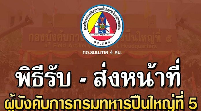 กรมทหารปืนใหญ่ที่ 5 จัดพิธีรับ-ส่งหน้าที่และมอบการบังคับบัญชา ผู้บังคับการกรมทหารปืนใหญ่ที่ 5