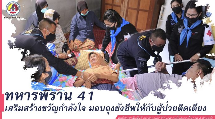 พันเอก อรรถพล คงสง ผู้บังคับหน่วยเฉพาะกิจกรมทหารพรานที่ 41 พร้อมด้วยทุกภาคส่วนที่เกี่ยวข้อง ลงพื้นที่พบปะเยี่ยมเยียนให้กำลังใจ นายนุรดีน ดะแซ ผู้ป่วยติดเตียงในพื้นที่ ตำบลเนินงาม อำเภอรามัน จังหวัดยะลา และ นางสะปีเย๊าะ ดือราแม ผู้ป่วยติดเตียง ในพื้นที่ ตำบลท่าธง อำเภอรามัน จังหวัดยะลา พร้อมอบถุงยังชีพตามโครงการ “หน่วยเฉพาะกิจยะลา ใส่ใจ ห่วงใย ประชาชนกลุ่มเปราะบาง” และสนับสนุนงบประมาณรวมถึงเครื่องอุปโภค-บริโภคในการยังชีพเพิ่มเติม โดยมุ่งหวังให้ประชาชนกลุ่มเปราะบางในพื้นที่ มีกำลังใจในการดำเนินชีวิต และพัฒนาคุณภาพชีวิตของประชาชนให้ดีขึ้น