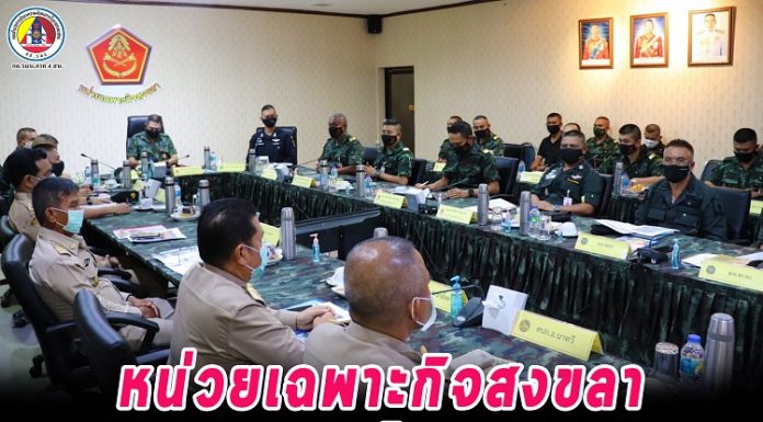 เมื่อวันที่ 3 กันยายน 2563 เวลา 09.30 น. พลตรี ศานติ ศกุนตนาค ผู้บัญชาการกองพลทหารราบที่ 5 / ผู้บังคับหน่วยเฉพาะกิจสงขลา ประชุมประจำเดือนของหน่วยเฉพาะกิจสงขลา รับฟังการบรรยายสรุปการปฏิบัติงานที่สำคัญของหน่วยในพื้นที่ พร้อมทั้งชี้แจงนโยบายการปฏิบัติงานที่สำคัญของผู้บังคับบัญชา พร้อมเน้นย้ำสั่งการของ แม่ทัพภาคที่ 4 / ผู้อำนวยการรักษาความมั่นคงภายในภาค 4 ณ ห้องประชุม กองบังคับการหน่วยเฉพาะกิจสงขลา อำเภอเทพา จังหวัดสงขลา