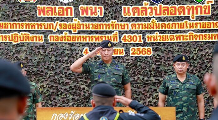 ผบ.ทบ.ลงใต้ ตรวจเยี่ยมกำลังพล ฉก.ทพ.43 พร้อมเน้นย้ำ ปฏิบัติหน้าที่ด้วยความระมัดระวังและปลอดภัย
