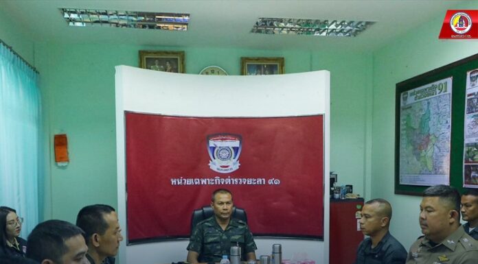 รองเลขาธิการ กองอำนวยการรักษาความมั่นคงภายในภาค 4 ส่วนหน้า ลงพื้นที่หน่วยเฉพาะกิจตำรวจยะลา 91 นำข้อห่วงใยและข้อเน้นย้ำจากผู้บังคับบัญชามาสู่กำลังพลที่ปฏิบัติหน้าที่ เน้นย้ำการปฏิบัติเชิงรุก ในห้วง 10 วันสุดท้ายของเดือนรอมฎอน