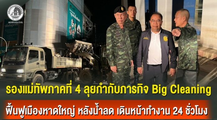 รองแม่ทัพภาคที่ 4 ลุยกำกับภารกิจ Big Cleaning ฟื้นฟูเมืองหาดใหญ่ หลังน้ำลด เดินหน้าทำงาน 24 ชั่วโมง