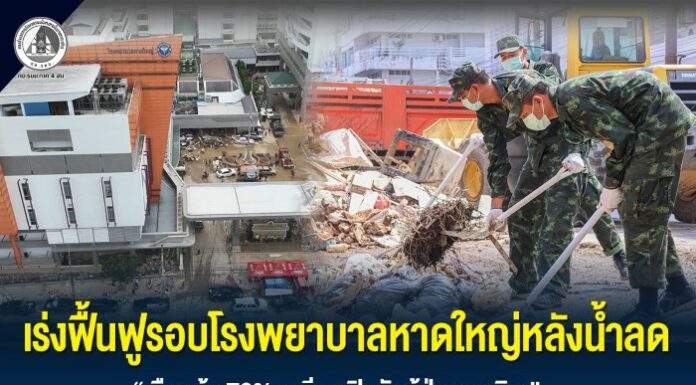 สำหรับภายในโรงพยาบาลหาดใหญ่ เจ้าหน้าที่และหน่วยสนับสนุนได้เร่งทำความสะอาดพื้นที่สำคัญ โดยเฉพาะห้องฉุกเฉิน ห้องผู้ป่วยวิกฤต และระบบสาธารณูปโภคพื้นฐาน ล่าสุดงานฟื้นฟูคืบหน้าแล้วกว่า 70% เร่งเตรียมพร้อมเปิดรับผู้ป่วยฉุกเฉินให้ได้โดยเร็วที่สุด เพื่อให้ประชาชนในพื้นที่หาดใหญ่และใกล้เคียงสามารถเข้าถึงการรักษาพยาบาลได้อย่างต่อเนื่อง