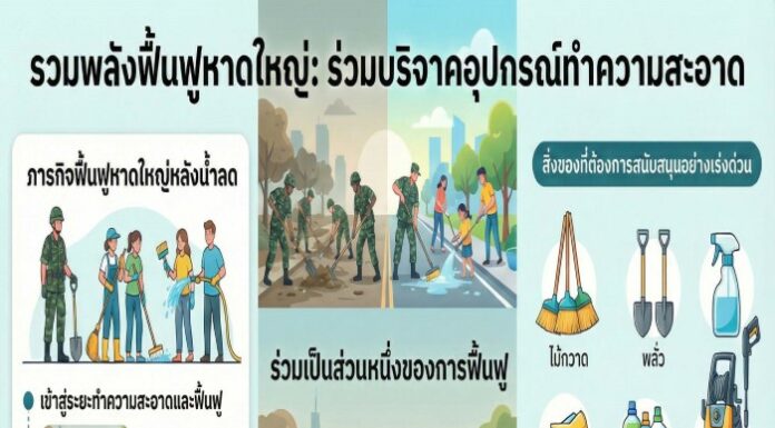 ปัจจุบัน การช่วยเหลือได้เข้าสู่ขั้นตอนการ ทำความสะอาดและฟื้นฟูหลังน้ำลด โดยหน่วยทหารได้จัดกำลังลงพื้นที่ใน 4 โซนหลัก เพื่อเร่งขับเคลื่อนการกู้คืนสภาพชุมชนให้ปลอดภัยและพร้อมให้ประชาชนกลับมาใช้ชีวิตได้ตามปกติ