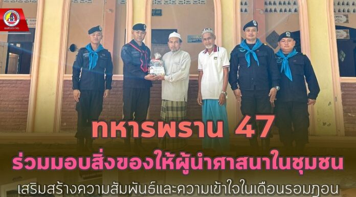 ทหารพราน 47 ร่วมมอบสิ่งของให้ผู้นำศาสนาในชุมชน เสริมสร้างความสัมพันธ์และความเข้าใจในเดือนรอมฎอน