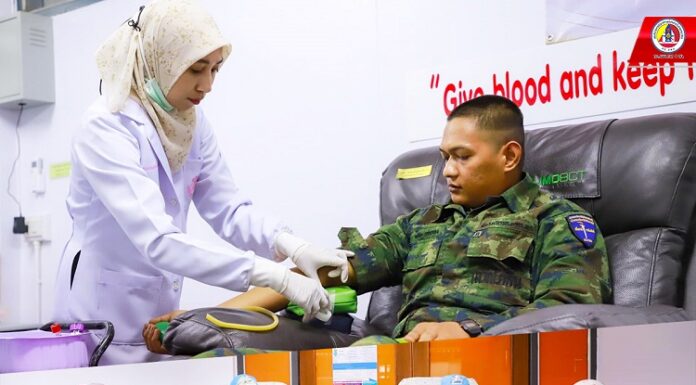 ฉก.นราธิวาส นำกำลังพลกองทัพบก บริจาคโลหิตใช้สำรองช่วยเหลือผู้ได้รับบาดเจ็บจากเหตุการณ์ สุไหงโก-ลก