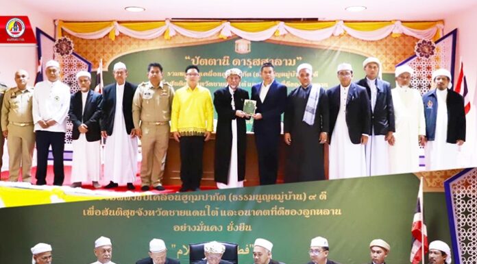พิธีลงนามรับรองแนวทางการปลูกฝัง “ยะกีน” ฉบับชาวบ้าน (กีตาบเล็ก) ให้เป็นจิตสำนึกที่แข็งแกร่ง เพื่อขับเคลื่อนธรรมนูญหมู่บ้าน 9 ดี (ฮูกุมปากัต)