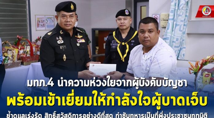 มทภ.4 นำความห่วงใยจากผู้บังคับบัญชา พร้อมเข้าเยี่ยมให้กำลังใจผู้บาดเจ็บ ย้ำดูแลเร่งรัด สิทธิ์สวัสดิการอย่างดีที่สุด กำชับทหารเป็นที่พึ่งประชาชนทุกมิติ