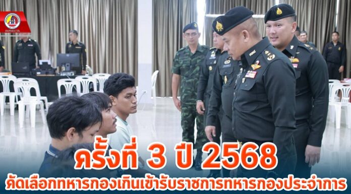 ครั้งที่ 3 ปี 2568 คัดเลือกทหารกองเกินเข้ารับราชการทหารกองประจำการ โดยวิธีร้องขอ (กรณีพิเศษ) ด้วยระบบออนไลน์ ตามนโยบายกองทัพบก