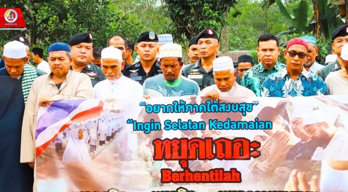 โดย พลตรี กรกฎ ภู่โชติ รองผู้อำนวยการรักษาความมั่นคงภายในภาค 4 ส่วนหน้า ย้ำว่า ฝ่ายความมั่นคงไม่สามารถแก้ไขปัญหาพื้นที่จังหวัดชายแดนภาคใต้โดยลำพัง ต้องได้รับการบูรณาการจากทุกภาคส่วน ในการร่วมมือทำหน้าที่ สานสัมพันธ์ระหว่างหน่วยงานอย่างประสานสอดคล้องและให้มีประสิทธิภาพสูงสุด...