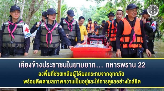 เคียงข้างประชาชนในยามยาก… ทหารพราน 22 ลงพื้นที่ช่วยเหลือผู้ได้ผลกระทบจากอุทกภัย พร้อมติดตามสภาพความเป็นอยู่และให้การดูแลอย่างใกล้ชิด