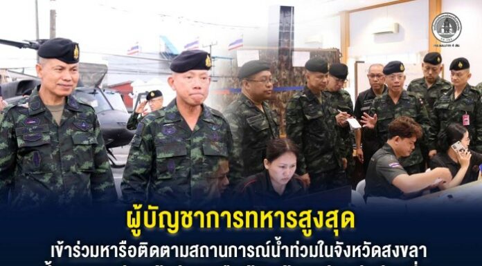 ผู้บัญชาการทหารสูงสุด เข้าร่วมหารือติดตามสถานการณ์น้ำท่วมในจังหวัดสงขลา ย้ำทุกภาคส่วนเข้าช่วยเหลือผู้ติดค้างอย่างเร่งด่วนที่สุด