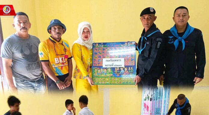 ทั้งนี้เจ้าหน้าที่ทหารพรานยังได้มอบโต๊ะอ่านหนังสือให้นักเรียน เป็นการสานสัมพันธ์เชื่อมมิตรไมตรี พร้อมสร้างความเข้าใจ และร่วมบูรณาการแก้ไขปัญหาทั้งยังเป็นการและสร้างขวัญกำลังใจให้กับน้อง ๆ นักเรียน และครูผู้สอนในพื้นที่อีกด้วย