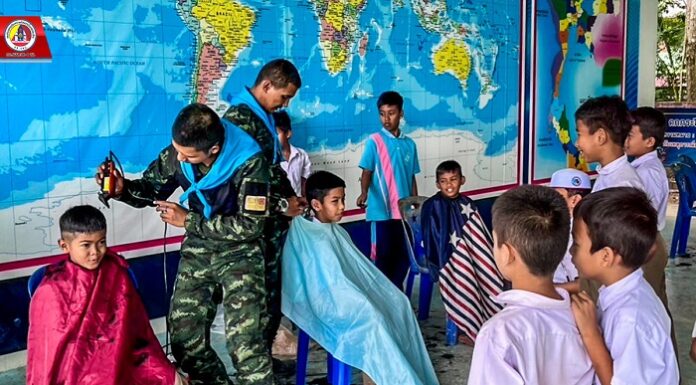วันที่ 6 มกราคม 2568 หน่วยเฉพาะกิจกองพันทหารราบที่ 1 จัดกำลังพลของหน่วยในส่วนของ “ชุดปฏิบัติการเสริมสร้างความเข้าใจ” เข้าพบปะเยี่ยมเยียนสานสัมพันธ์ กับบุคลากรทางการศึกษา ณ โรงเรียนบ้านระแว้ง บ้านจาแบปะ หมู่ที่ 4 ตำบลระแว้ง อำเภอยะรัง จังหวัดปัตตานี กำลังพลให้การบริการตัดผมแก่นักเรียน ตามโครงการ “เกศาสานใจ เพื่อเป็นการช่วยเหลือแบ่งเบาภาระค่าใช้จ่ายในการตัดผมของบุตรหลาน ให้กับราษฎรในพื้นที่และเป็นการสร้างความเชื่อมั่นให้กับพี่น้องประชาชนในพื้นที่ ภายใต้ “สังคมการอยู่ร่วมกันของพี่น้องประชาชน กับเจ้าหน้าที่ทางภาครัฐ อย่างสันติสุข”