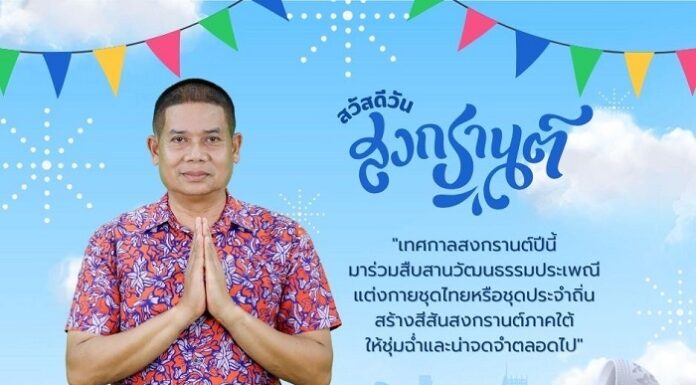 “…เทศกาลสงกรานต์ปีนี้ มาร่วมสืบสานวัฒนธรรมประเพณี แต่งกายชุดไทยหรือชุดประจำถิ่น สร้างสีสันสงกรานต์ภาคใต้ ให้ชุ่มฉ่ำและน่าจดจำตลอดไป…”