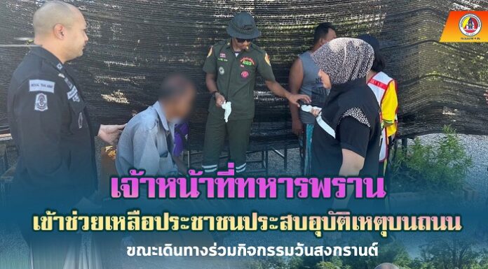 เจ้าหน้าที่ทหารพรานเข้าช่วยเหลือประชาชนประสบอุบัติเหตุบนถนน ขณะเดินทางร่วมกิจกรรมวันสงกรานต์