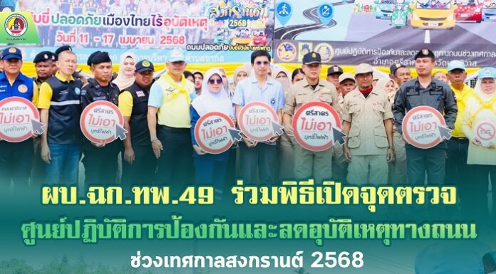 ผบ.ฉก.ทพ.49 ร่วมพิธีเปิดจุดตรวจศูนย์ปฏิบัติการป้องกันและลดอุบัติเหตุทางถนนช่วงเทศกาลสงกรานต์ 2568