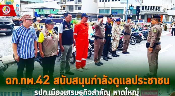 เมื่อวันที่ 29 ธันวาคม 2567 ณ พื้นที่ อำเภอหาดใหญ่ จังหวัดสงขลา หน่วยเฉพาะกิจกรมทหารพรานที่ 42 จัดกำลังพลชุดสนับสนุน หมวดทหารพรานหญิง หน่วยเฉพาะกิจกรมทหารพรานที่ 42 ร่วมกับ หน่วยขึ้นตรง กองกำลังทหารพรานจังหวัดชายแดนภาคใต้ ร่วมพิธีปล่อยแถว ระดมกำลังกวาดล้าง ป้องกันอาชญากรรม ในช่วงเทศกาลส่งท้ายปีเก่า 2567 ต้อนรับปีใหม่ 2568 เพื่อป้องกันการก่อเหตุด้านความมั่นคง และอาชญากรรมต่างๆ ตลอดจนสร้างความเชื่อมั่นแก่ประชาชนและนักท่องเที่ยวในช่วงเทศกาลปีใหม่ในเขตพื้นที่เศรษฐกิจ อำเภอหาดใหญ่ฯ โดยมี พันตำรวจเอก ภูมิ บาลทิพย์ ผู้กำกับการสถานีตำรวจภูธรหาดใหญ่ เป็นประธาน