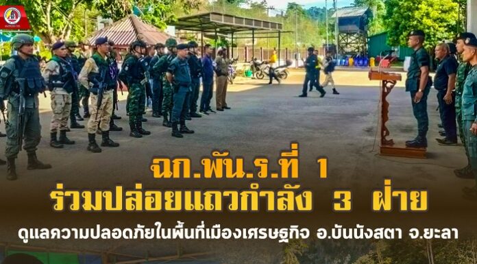 “ฉก.พัน.ร.ที่ 1” ร่วมปล่อยแถวกำลัง 3 ฝ่าย ดูแลความปลอดภัยในพื้นที่เมืองเศรษฐกิจ อ.บันนังสตา จ.ยะลา