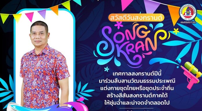 “…เทศกาลสงกรานต์ปีนี้ มาร่วมสืบสานวัฒนธรรมประเพณี แต่งกายชุดไทยหรือชุดประจำถิ่น สร้างสีสันสงกรานต์ภาคใต้ ให้ชุ่มฉ่ำและน่าจดจำตลอดไป…”
