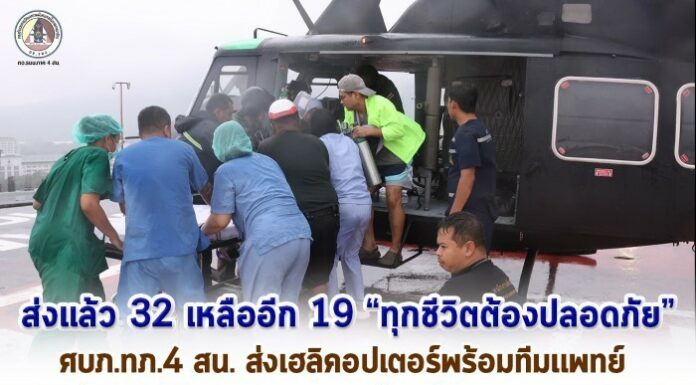 ส่งแล้ว 32 เหลืออีก 19 “ทุกชีวิตต้องปลอดภัย” ศบภ.4 ส่วนหน้า ส่งเฮลิคอปเตอร์พร้อมทีมแพทย์ เร่งเคลื่อนย้ายผู้ป่วยวิกฤติจาก รพ.หาดใหญ่ ไปยัง รพ.สงขลานครินทร์