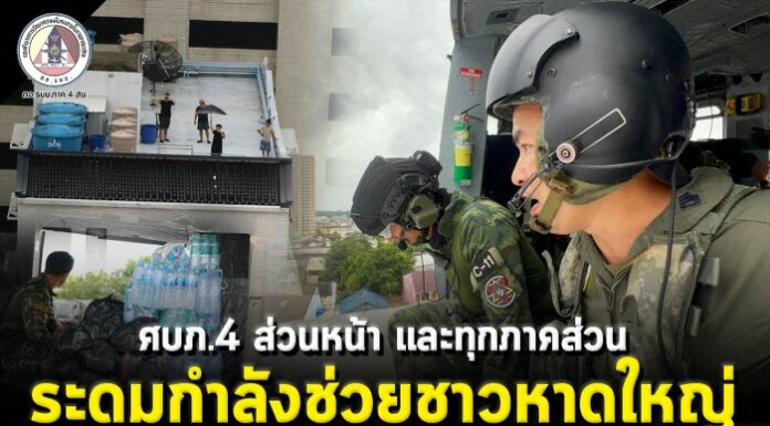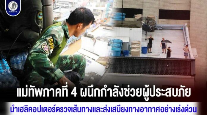 แม่ทัพภาคที่ 4 ผนึกกำลังช่วยผู้ประสบภัย นำเฮลิคอปเตอร์ตรวจเส้นทางและส่งเสบียงทางอากาศอย่างเร่งด่วน