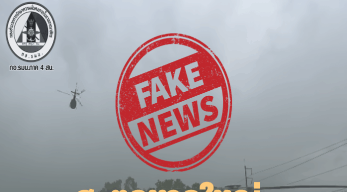 ศูนย์ประชาสัมพันธ์ กองอำนวยรักษาความมั่นคงภายในภาค 4 ส่วนหน้า ยืนยันไม่มี ฮ.ตก จากกรณีโพสต์ในสังคมออนไลน์ ที่มีการแชร์ข่าว เฮลิคอปเตอร์ของเจ้าหน้าที่ตก ขณะออกช่วยเหลือพี่น้องประชาชนที่ประสบอุทกภัยในอำเภอหาดใหญ่นั้น ไม่เป็นความจริง ขอความร่วมมือพี่น้องประชาชนงดแชร์ข้อมูลไม่เป็นความจริง หรือข้อมูลที่บิดเบือน หากมีข้อมูลที่สงสัยสามารถสอบถามได้ทางเพจ กองอำนวยการรักษาความมั่นคงภายในภาค 4 ส่วนหน้า
